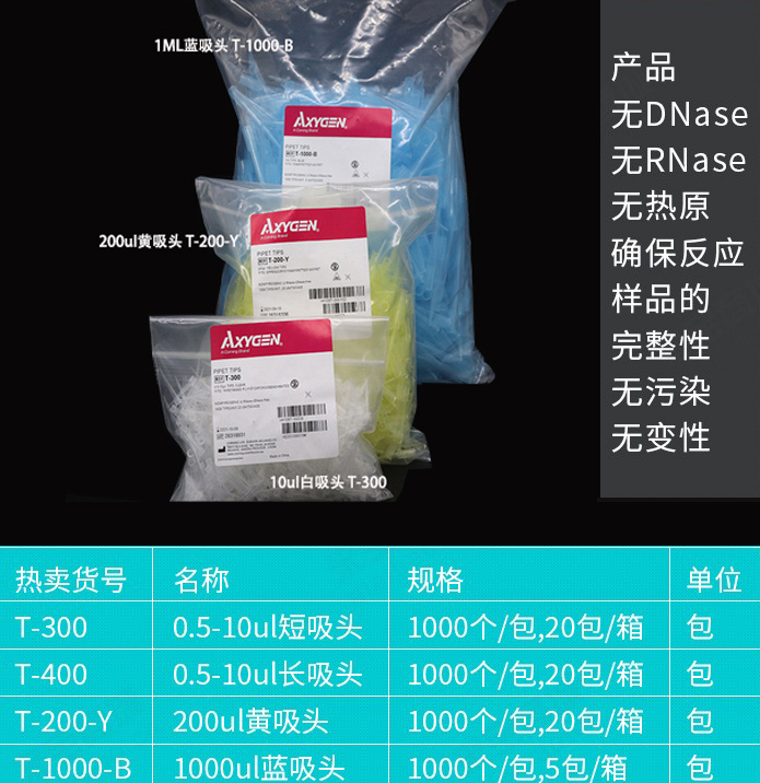 愛(ài)思進(jìn) Axygen 吸頭T-300、 T-200-Y、 T-1000-B