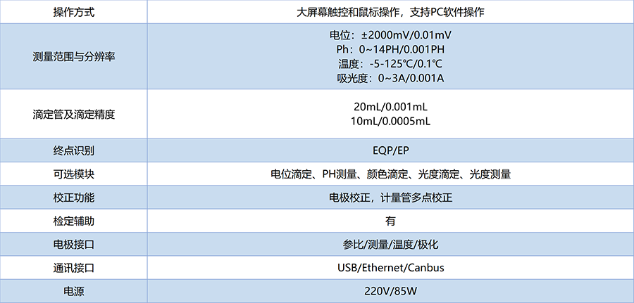 7、滴定方法:酸堿滴定、氧化還原滴定、沉淀滴定、非水滴定、絡(luò)合滴定、顏色滴定 (指示劑法) 、恒PH滴定,可自定義終點,等當(dāng)點滴定等