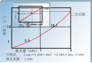 2.方程式 例:Conc=10.000×Abs2+0.100×Abs-0.000 相關(guān)系數(shù) 1.000