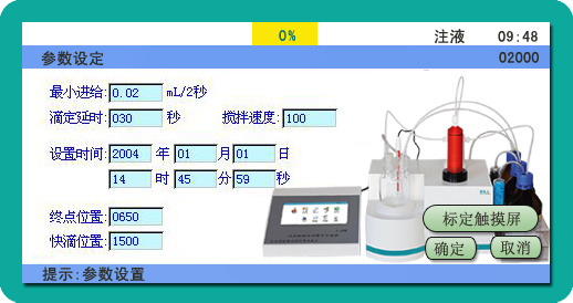 MAC-1智能卡爾費(fèi)休水分測(cè)定儀(容量法)采用帶觸摸屏的超大屏幕LCD液晶顯示器,具有軟件內(nèi)容豐富,操作內(nèi)容漢字提示,人機(jī)對(duì)話(huà)靈活方便,試驗(yàn)結(jié)果存儲(chǔ)和打印等功能。在2010年又和清華大學(xué)精密測(cè)試技術(shù)及儀器國(guó)家重點(diǎn)實(shí)驗(yàn)室合作,用超精密位移測(cè)量技術(shù)對(duì)其做了進(jìn)一步的改進(jìn),測(cè)量精度有了質(zhì)的飛躍,達(dá)到了世界水平。