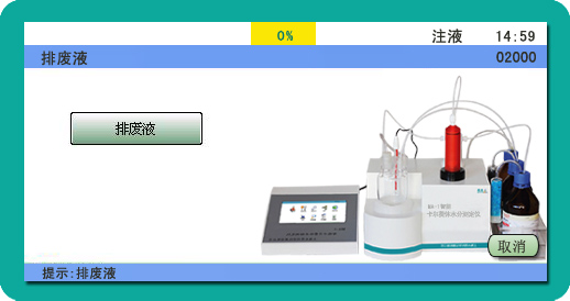 如果兩次實(shí)驗(yàn)相隔時(shí)間較長(zhǎng)(一般指10天以上),您還可以將容量管中的剩余卡爾費(fèi)休試劑注回試劑瓶中,以減少試劑的浪費(fèi),這一步驟同樣只需您操作觸摸屏即可。