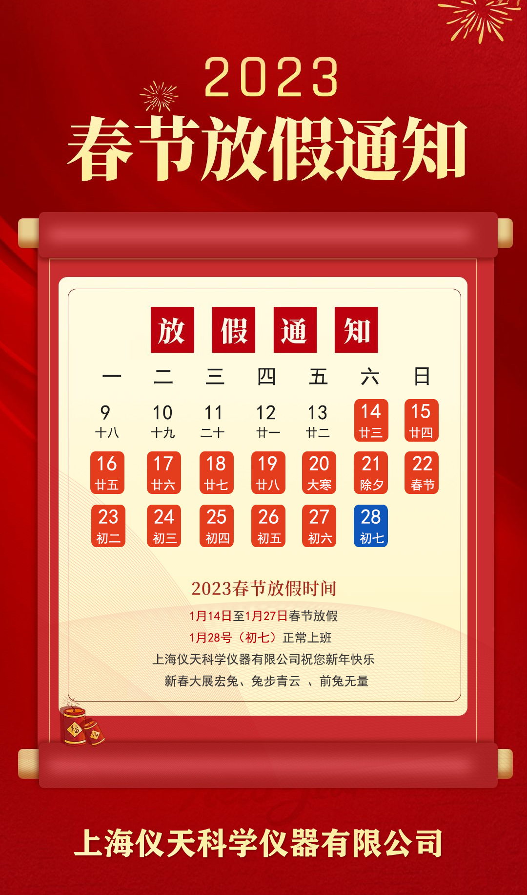 2023年春節(jié)放假通知2023/1/12