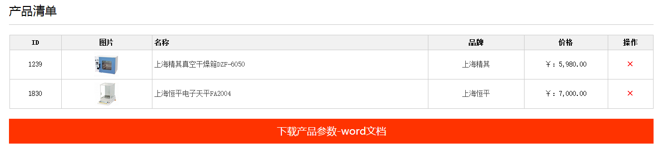 ,點(diǎn)擊后下載參數(shù)。產(chǎn)品清單支持多產(chǎn)品的加入。