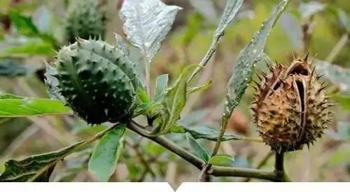 2、曼陀羅:野生全白花,成筒狀。蒴果直立生,有堅(jiān)硬針刺。常生于荒地、旱地、宅旁、向陽山坡、林緣、草地。喜溫暖、向陽及排水良好的砂質(zhì)壤土。具有藥用或觀賞價(jià)值。