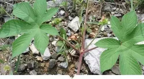 3、苘(qǐng)麻:田間特別常見,籽一爆一堆,成熟后的莖皮是制造繩索和包裝用品的原料。